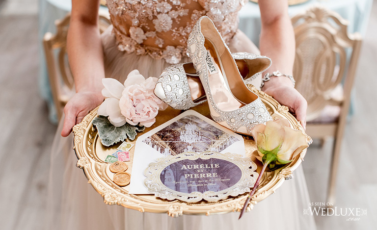 PHOTOGRAPHY • Beyond Infiniti Photography, EVENT PLANNING AND DECOR DESIGN • An Elegant Soirée Weddings & Events, FLORAL DESIGN • Hello Midge Flower Studio, VENUE • La Maquette, STATIONERY DESIGN AND BACKDROP DESIGN • Castlefield Design, GOWN • Wins Design, SHOES • Imagine by Vince Camuto, SHOES • Badgley Mischka, JEWELLERY • The Loved One, ENGAGEMENT RING • Emily Gill Design, HAIR AND MAKEUP • Beautified by Renee, TABLEWARE • Tableauscapes, RENTALS • Vintage Glam Events, LINEN AND NAPKINS • Susan Murray International, CAKE DESIGN • Rococoa Butter, BACKDROP PRINTING • Dance Floor Décor, MODELS • Hannah Bickle and Sarah Bickle, CINEMATOGRAPHY • JustKlik Productions