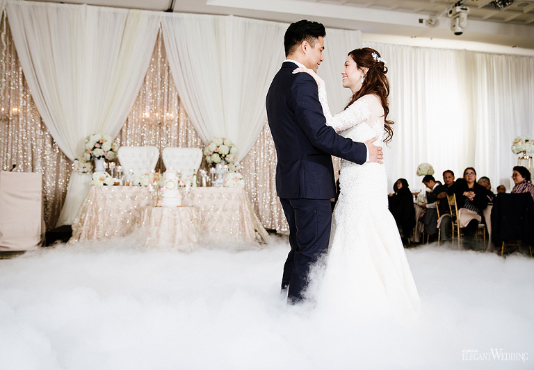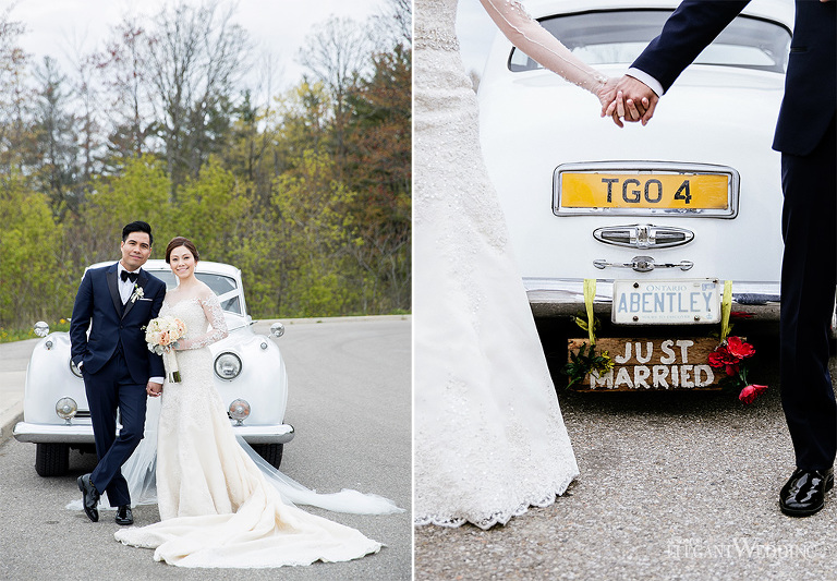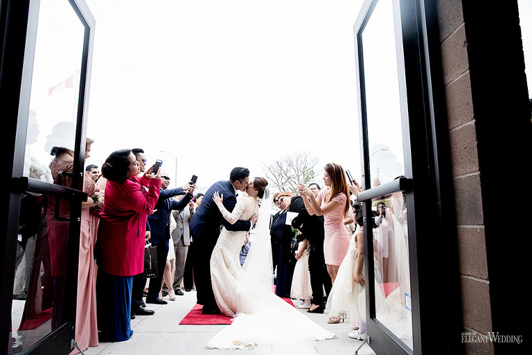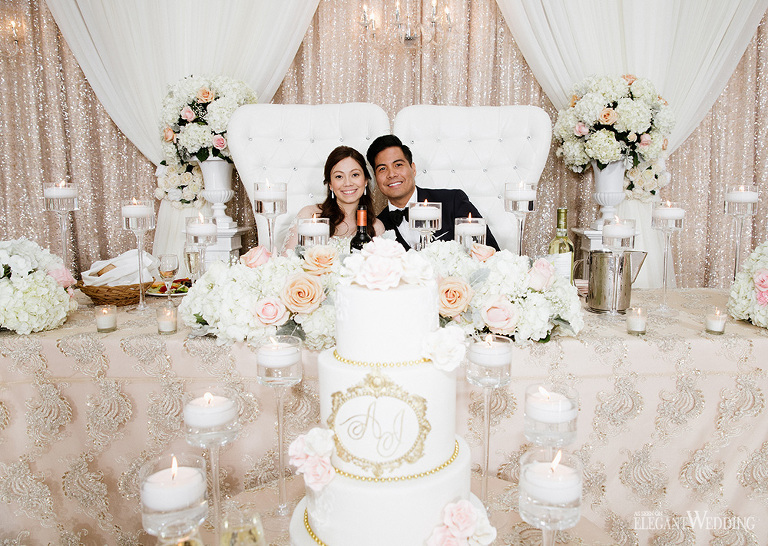 Planning & Styling: An Elegant Soirée Weddings & Events | Flowers: Floral Design Inc. | Photo: Beyond Infiniti Photography | Venue: Mississauga Convention Centre | Decor & Linens: Right Choice Linen | Chiavari Chair Rentals: Majestic Chair Boutique | Cake: Baked By Nature | Hair: Maureen Posadas | Makeup: Windy Chiu | Dress: Mel Orlina Couture | Bridesmaids Makeup & Hair: All Dolled Up by Charisse | Suit: Andrew’s Formals | Entertainment: Unique Entertainment Group | Videography: Just Klik Productions | Reception Musician: Brent Miller Live | Ceremony Singer: Claudia Ferro | Party Bus: Paradise Toronto Livery Inc. | Vintage Bentley: A Rolls Choice | Dancefloor Wraps: Exotic Wrapz